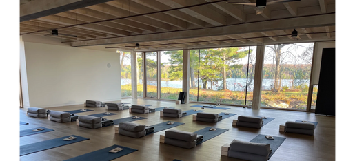 Located just north of Kingston, bloom is a stunning property with over 900 acres of nature to explore. We live in a luxurious building with all the comforts of home. The talented chefs prepare our vegetarian meals. A beautiful yoga studio and meditation room support our practices. The lakeside sauna and cozy living room help us to relax. It's about a 3 hour drive from Toronto.